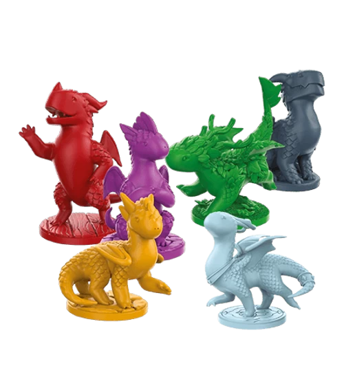 A set of 6 color dragon miniatures 35mm-40mm. Designed by Sandara Tang, modeled by Erick Tosco.