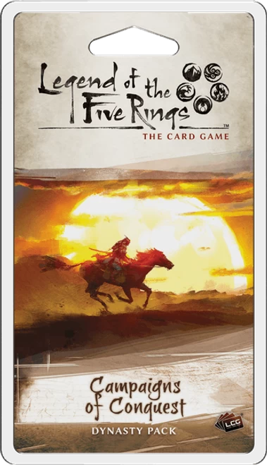 As the next piece of the Dominion cycle for Legend of the Five Rings: The Card Game, Campaigns of Conquest leans into the biggest themes of the cycle, boasting three dynasty deck events and nine cards with the new rally keyword. New cards for each of the seven Great Clans enhance their deck-building options, while a new Lion stronghold invites Lion Clan players to explore a new type of deck centered on your Bushi. Can you safeguard the future of the Emerald Empire and uphold your clan’s honor?