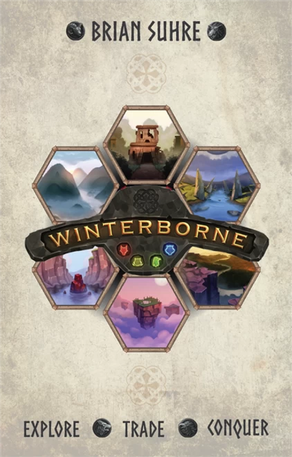 Winterborne is a Euro-style medium weight game with light deckbuilding and tableau building. Players will use three different characters; the Viking, the Shaman, and the Explorer to lead their clan and expand their kingdom. The game is played over the Norse calendar year and each clan is preparing for the harsh winter. Players will enjoy the light interaction by exploring for cards and conquering nearby lands. Once winter is over the game ends and the player with the most Victory Points wins the game.
